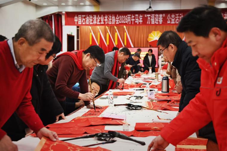 春潮涌动启新程,笔墨传情送福来。1月30日,中国石油驻津企业书法协会7名成员走进公司,开展“万福迎春”书法公益活动,以笔墨为媒,以文化为桥,在挥毫泼墨间为公司广大员工及家属送上独具特色的马年新春美好祝福,让大家在墨香氤氲中感受中华优秀传统文化的独特魅力。